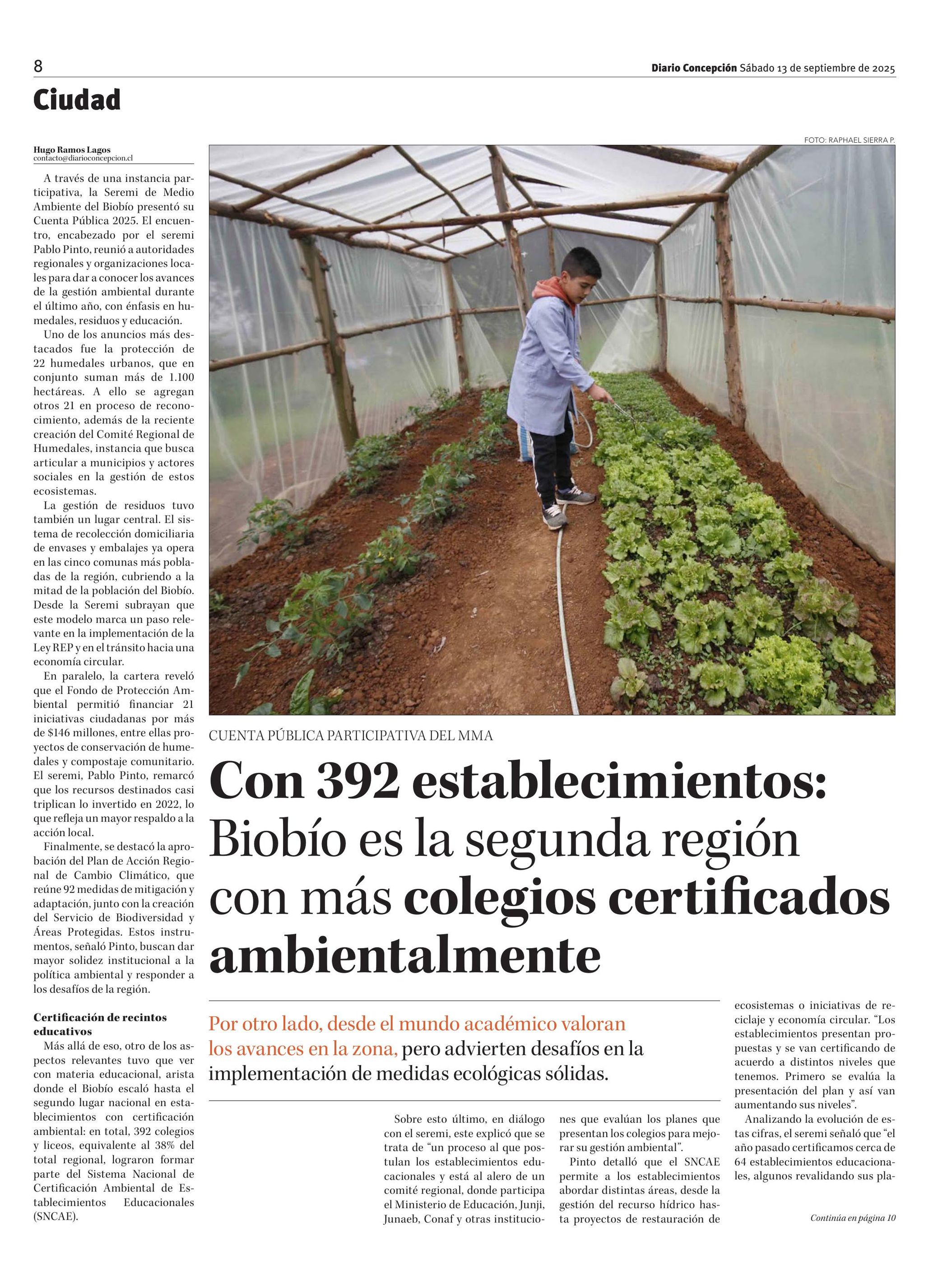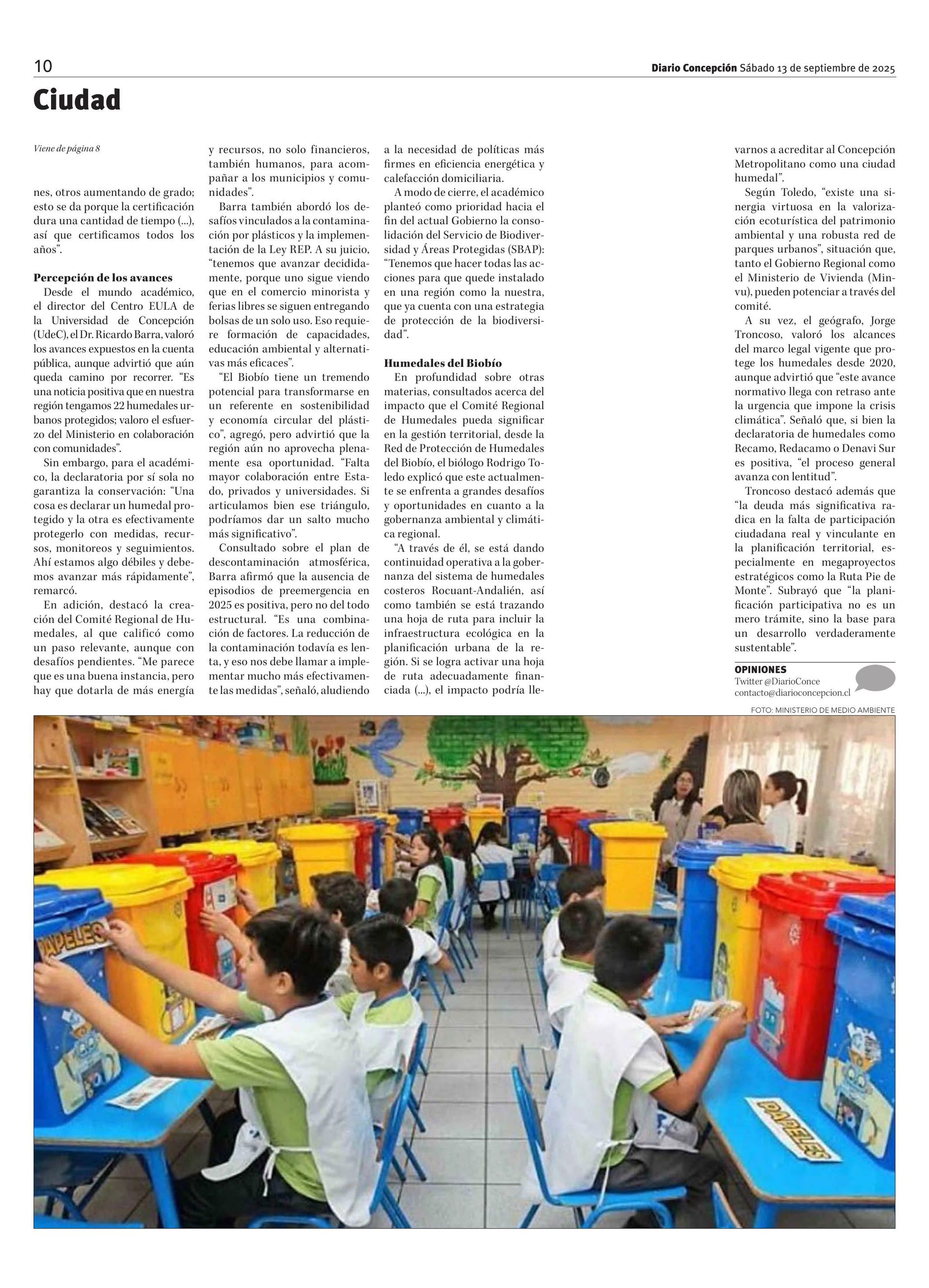 Desde el mundo académico, el director del Centro EULA de la Universidad de Concepción (UdeC), el Dr. Ricardo Barra, valoró los avances expuestos en la cuenta pública, aunque advirtió que aún queda camino por recorrer. “Es una noticia positiva que en nuestra región tengamos 22 humedales urbanos protegidos; valoro el esfuerzo del Ministerio en colaboración con comunidades”.